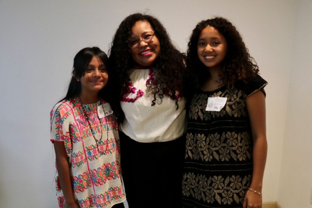 Donaji Sofia (right) and Isaura Valentina (left) are shown with Federal Senator Maria Celeste Sanchez following their presentations to Congress.
